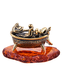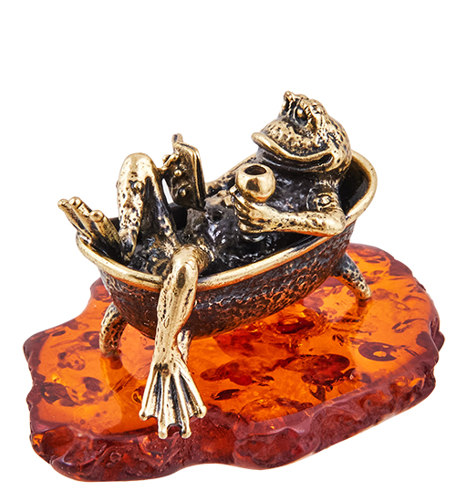 AM-3683 Фигурка «Лягушка вечерняя релаксация» (латунь, янтарь)