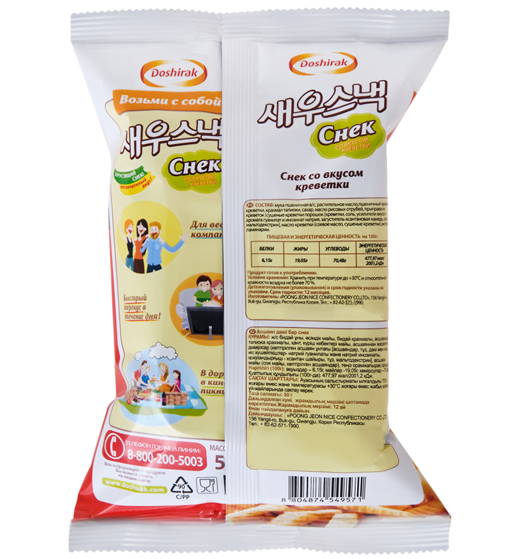 ER-158 Чипсы «Doshirak» со вкусом креветок, 4шт х 50г, Корея