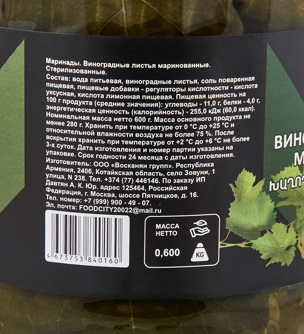 ARM-20/06 Виноградные листья 600гр (ARMFOOD)