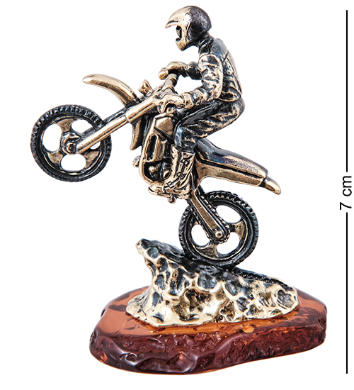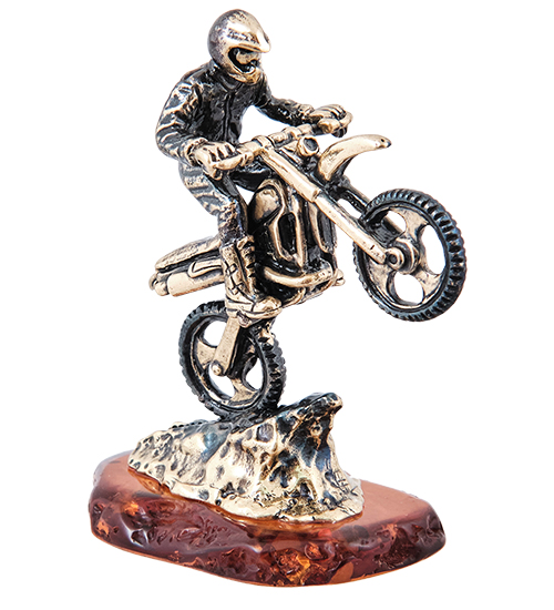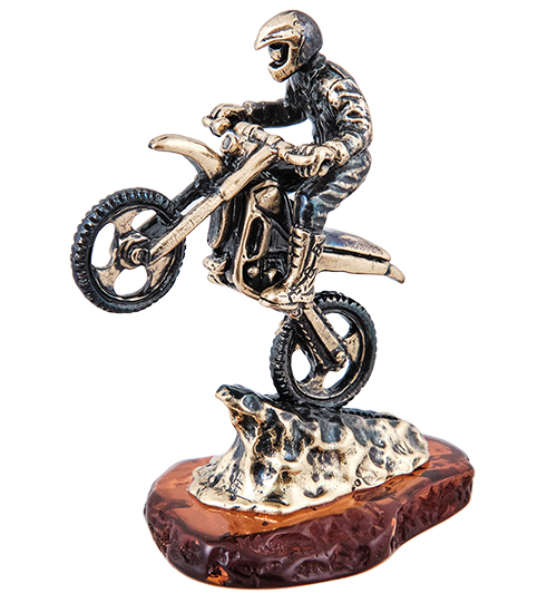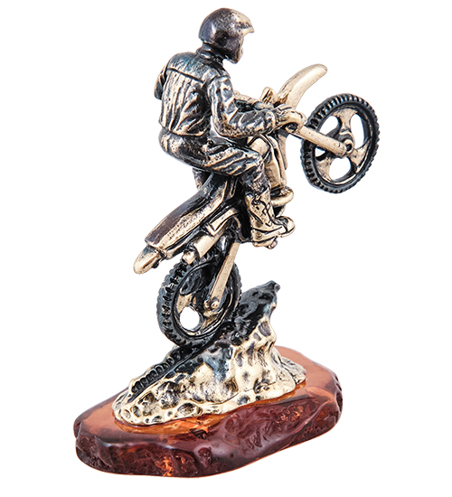 AM-3959 Фигурка «Мотоциклист Эндуро» (латунь, янтарь)