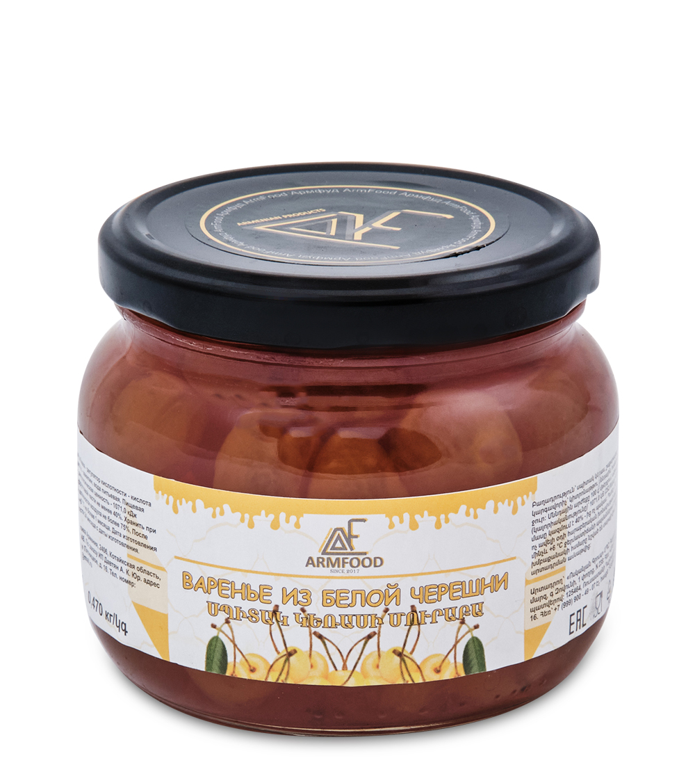 Материал: Белая черешня, сахар-песок, пищевая добавка - регулятор кислотности - кислота лимонная пищевая, вкусоароматическое вещество - ванилин, вода питьевая.