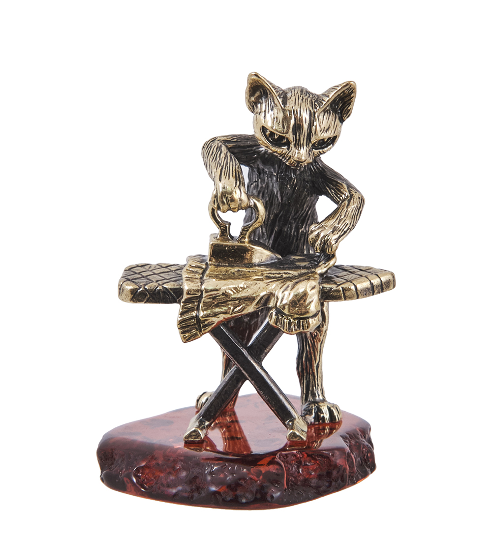 AM-4023 Фигурка «Кошка Хозяюшка» (латунь, янтарь)
