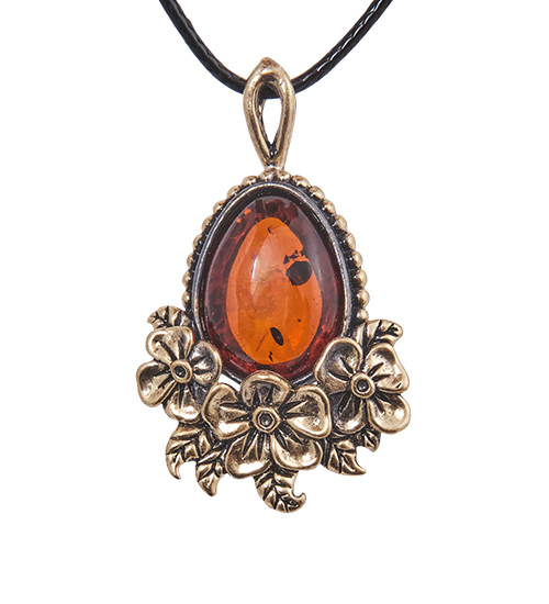 AM-4142 Подвеска «Цветочное Настроение» (латунь, янтарь)