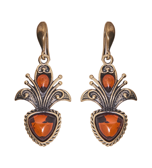 AM-4146 Серьги «Лотос» (латунь, янтарь)