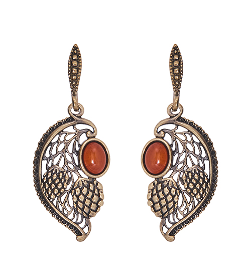 AM-4147 Серьги «Малинка» (латунь, янтарь)