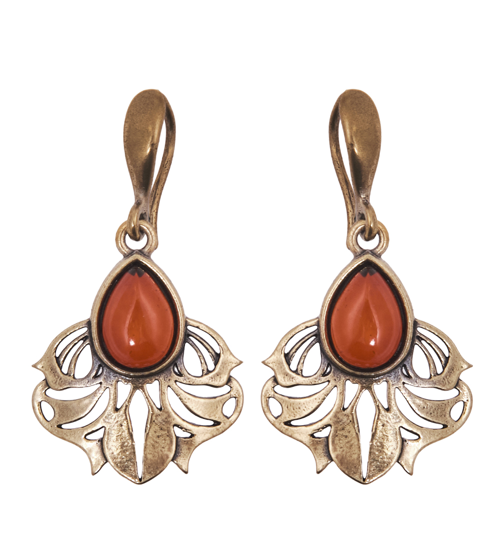 AM-4148 Серьги «Паттерн» (латунь, янтарь)
