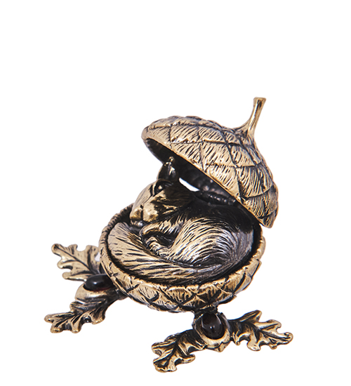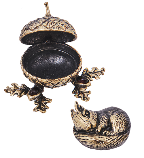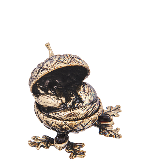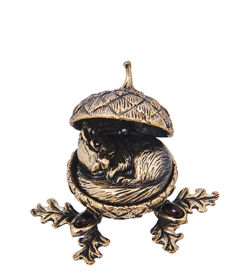 AM-4166 Шкатулка «Белочка в желуде» (латунь, янтарь)