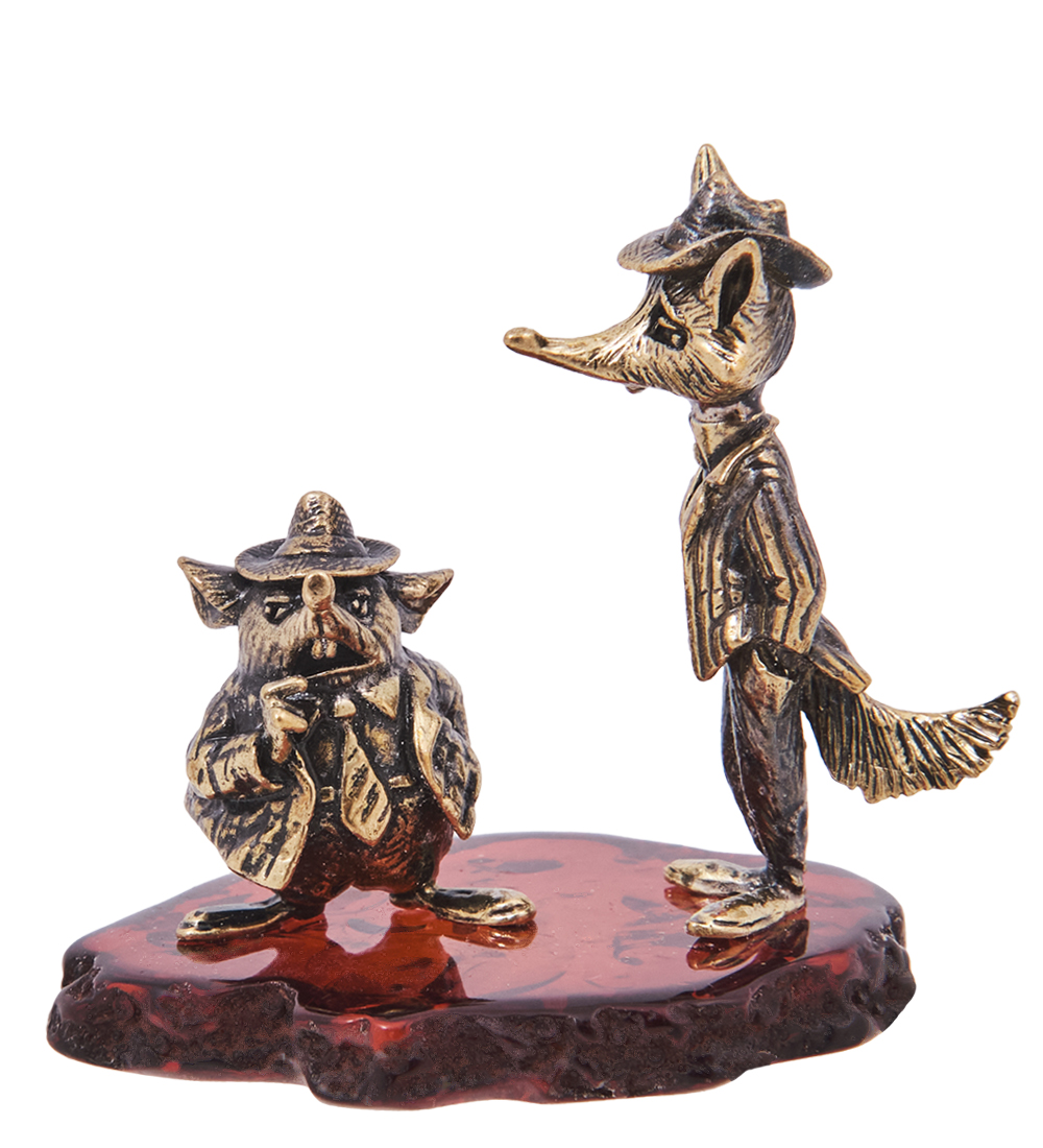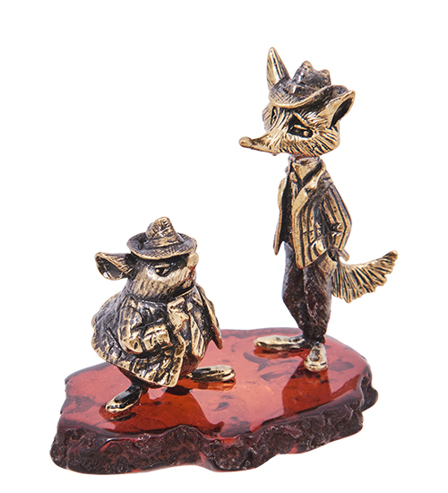 AM-4184 Фигурка «Лис Ник и Мистер Биг» (латунь, янтарь)