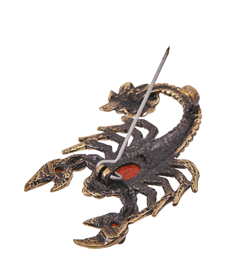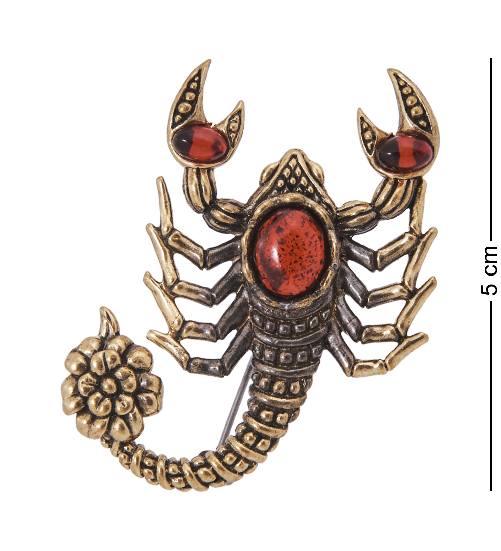 AM-4210 Брошь «Скорпион Цветочек» (латунь, янтарь)