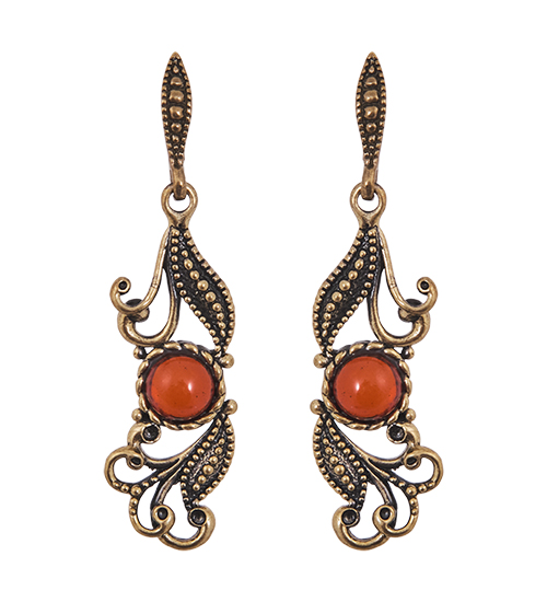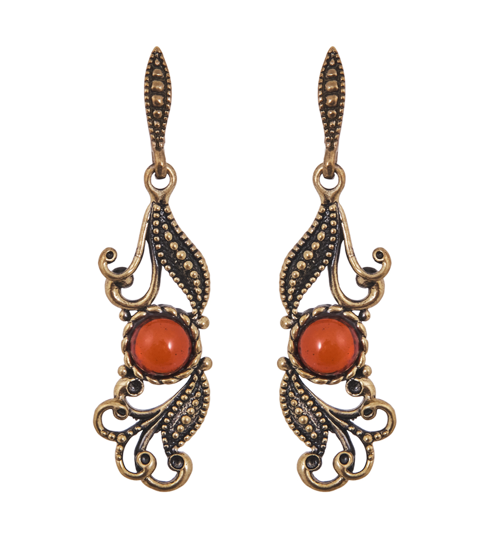 AM-4214 Серьги «Майский жук» (латунь, янтарь)