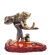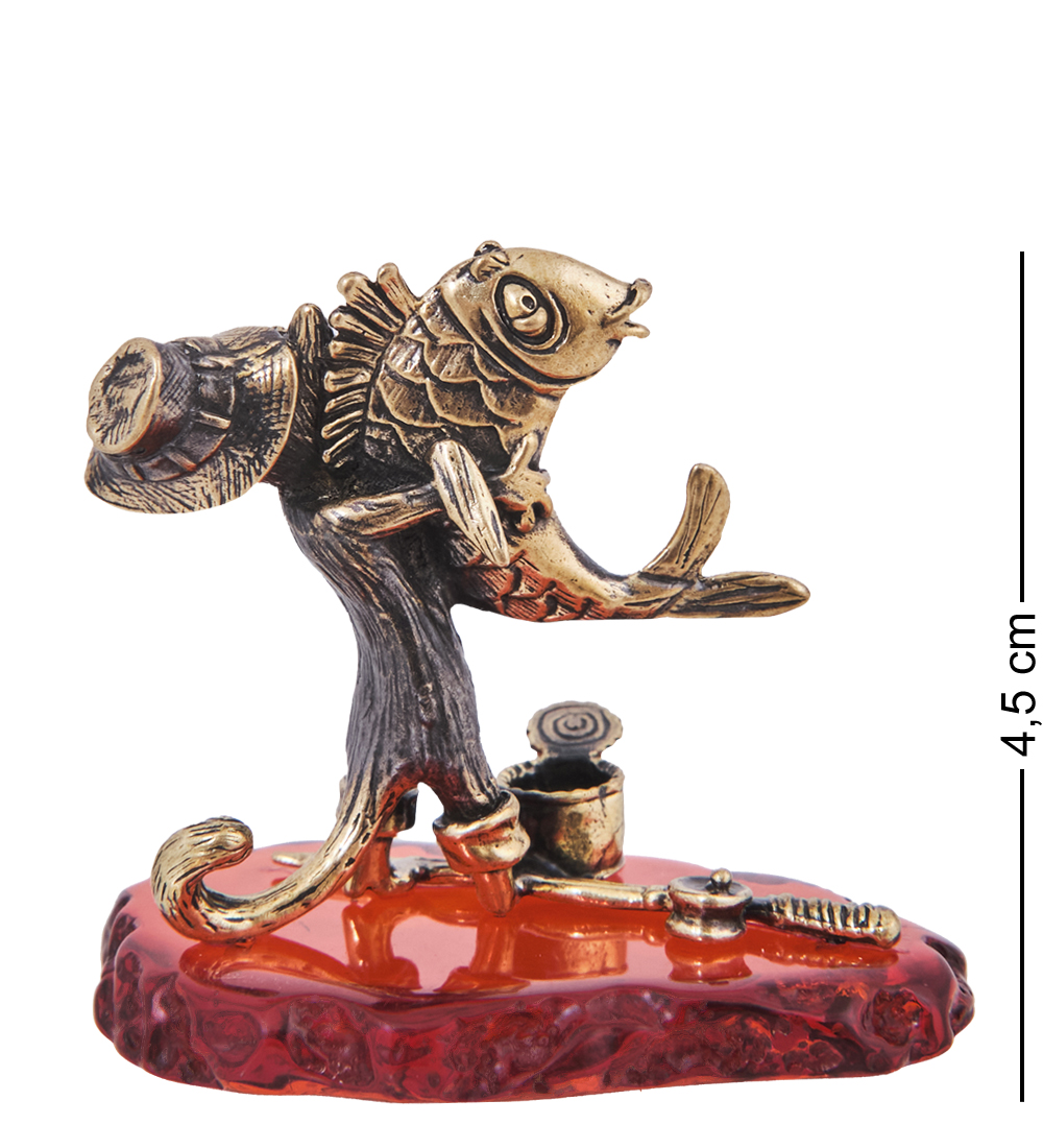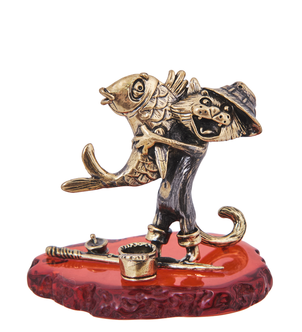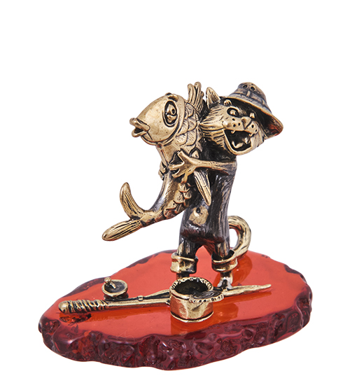 AM-4215 Фигурка «Кот Рыбак Счастливчик» (латунь, янтарь)