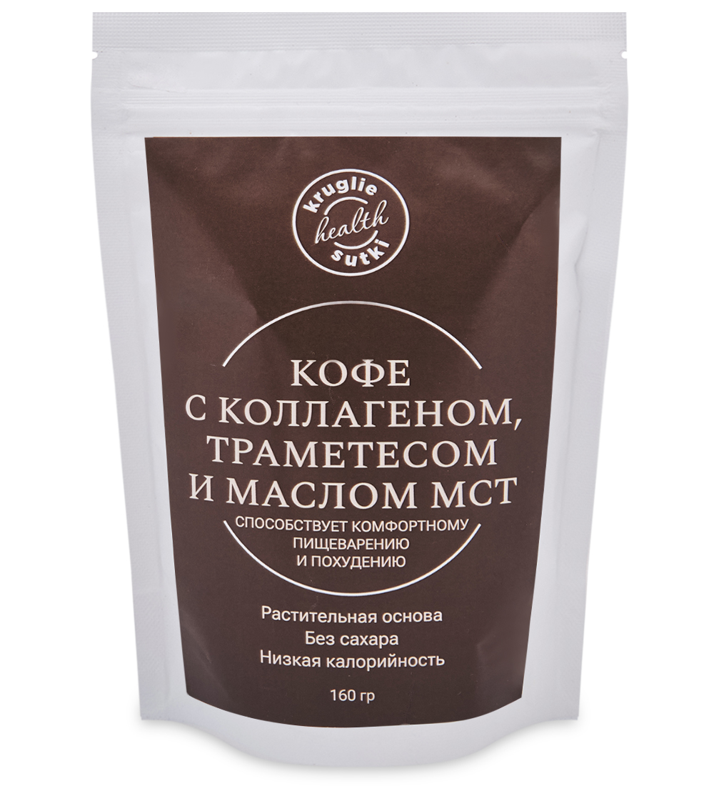Материал: Молотый кофе растворимый, сливки кокосовые, гидролизованный куриный коллаген, масло МСТ, эритрит, трегалоза, траметес разноцветный, ароматизатор.