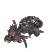 AM-4235 Брошь «Белочка на ветке с орешками» (латунь, янтарь)