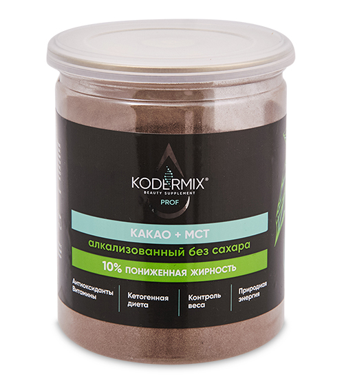Материал: Какао-порошокалкализованныйнатуральный, среднецепочные триглицериды (МСТ), порошок освяный ферментированный, аллюлоза, ваниль.