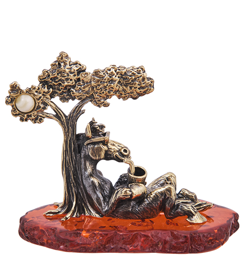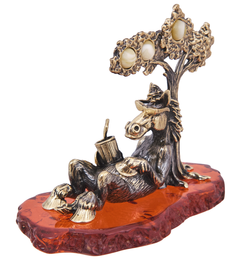 AM-4244 Фигурка «Лошадь Жизнь Кайф» (латунь, янтарь)