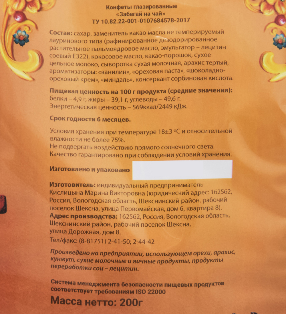 Материал: Сахар, заменитель какао масла нелауринового типа (рафинированное дезодорированное растительное пальмоядровое масло, эмульгатор – лецитин соевый Е322), кокосовое масло, какао-порошок, сухое цельное молоко, сыворотка сухая молочная, арахис тертый, ароматизаторы: «ваниилин», «ореховая паста», «шоколадно-ореховый крем», «миндаль», консервант сорбиновая кислота.