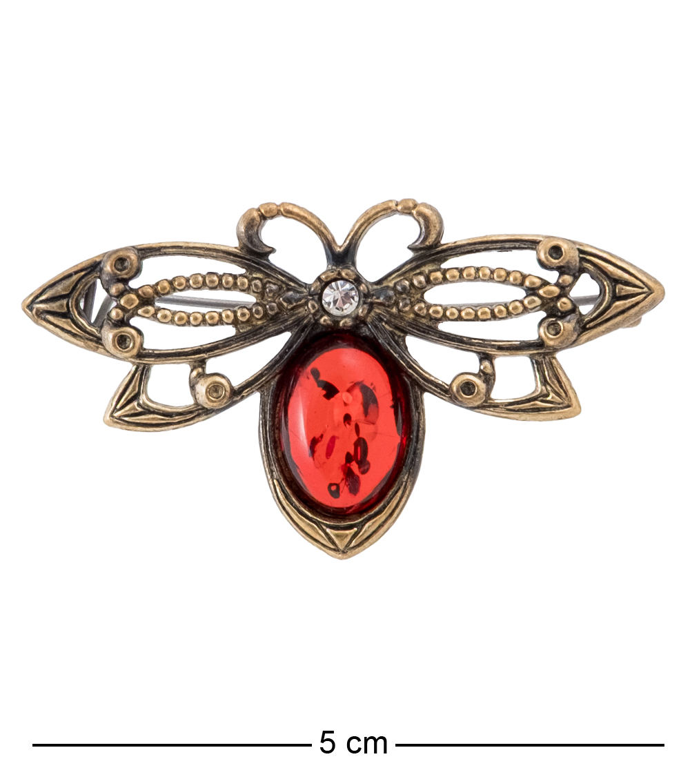 AM-4252 Брошь «Бабочка Сказочная» (латунь, янтарь)