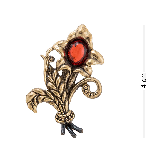 AM-4253 Брошь «Букет Альстромерия» (латунь, янтарь)