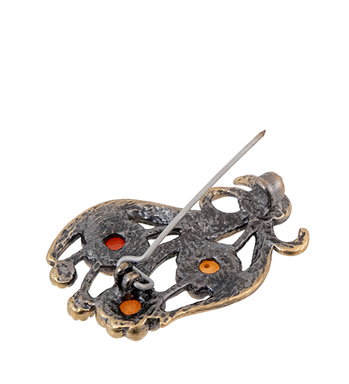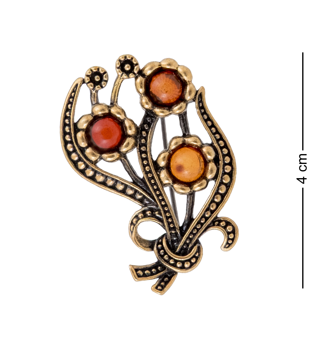 AM-4254 Брошь «Букет Фиалки» (латунь, янтарь)