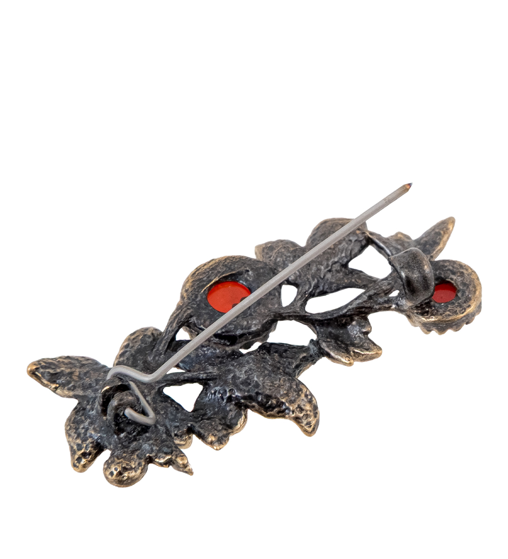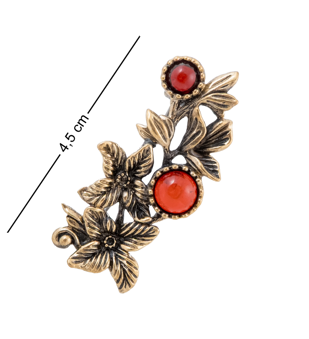 AM-4257 Брошь «Веточка Миндаль» (латунь, янтарь)