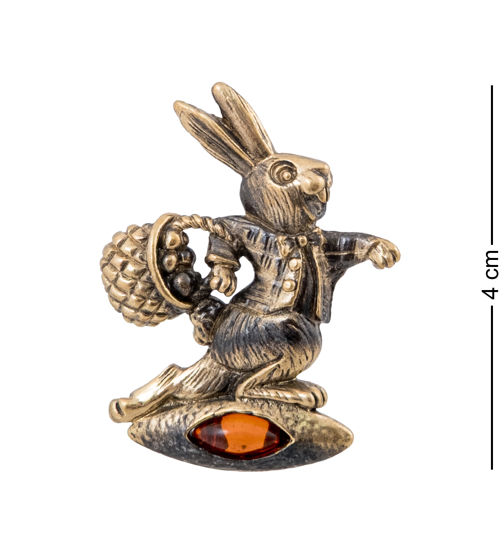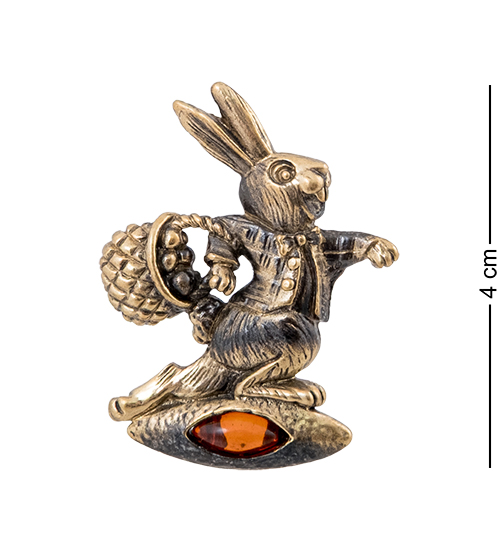 AM-4260 Брошь «Заяц Пасхальный» (латунь, янтарь)