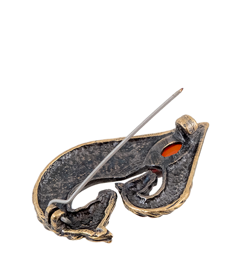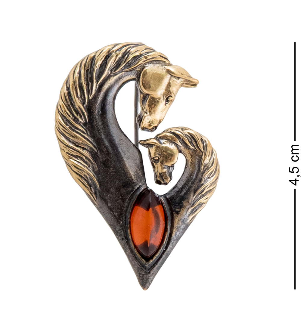 AM-4261 Брошь «Кони Сердце» (латунь, янтарь)