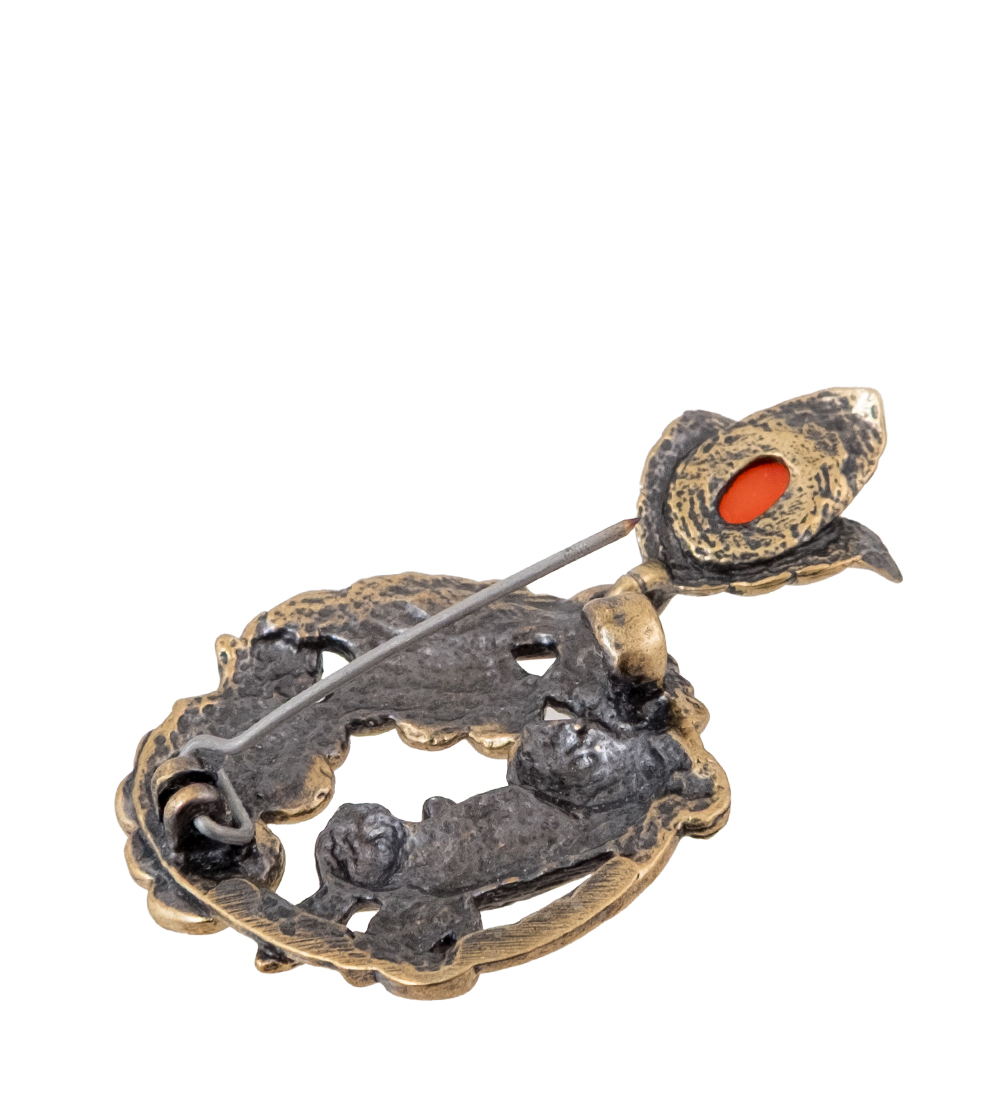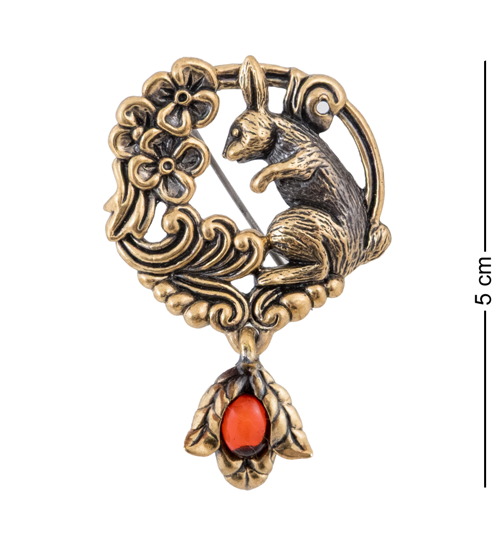 AM-4262 Брошь «Кролик в стране чудес» (латунь, янтарь)