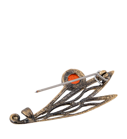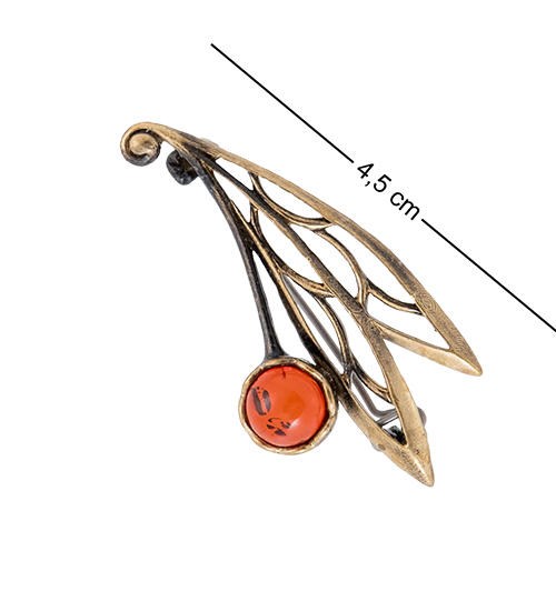 AM-4263 Брошь «Крылышки Стрекозки» (латунь, янтарь)