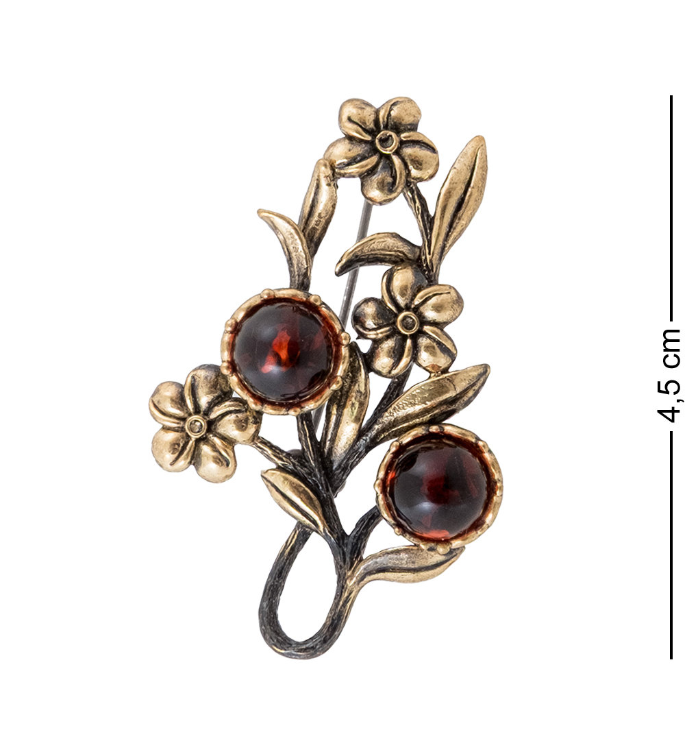 AM-4269 Брошь «Ягодки» (латунь, янтарь)