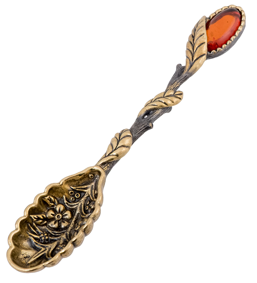 AM-4270 Ложка «Веточка» (латунь, янтарь)