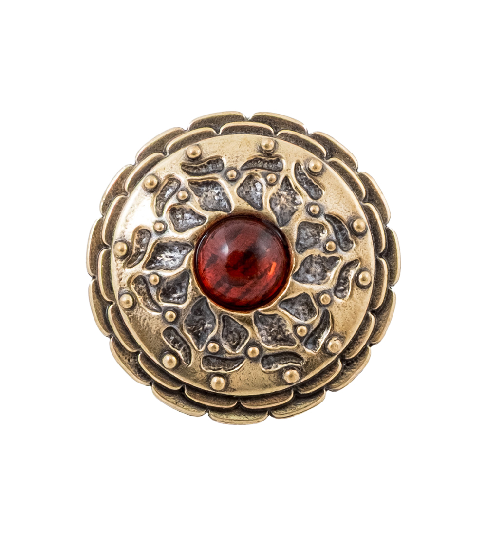 AM-4280 Пуговица «Хризантема» (латунь, янтарь)