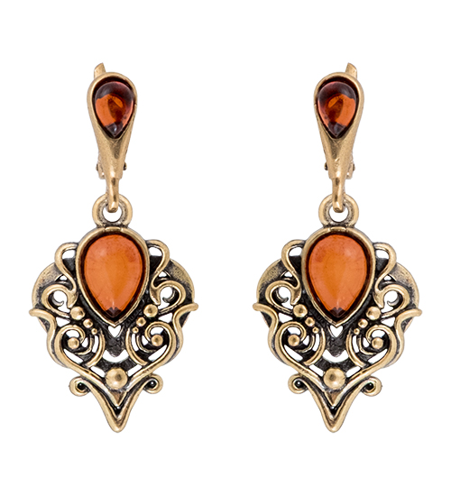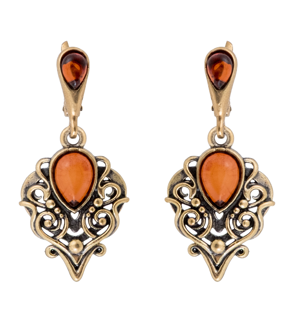 AM-4281 Серьги «Восток» (латунь, янтарь)