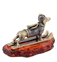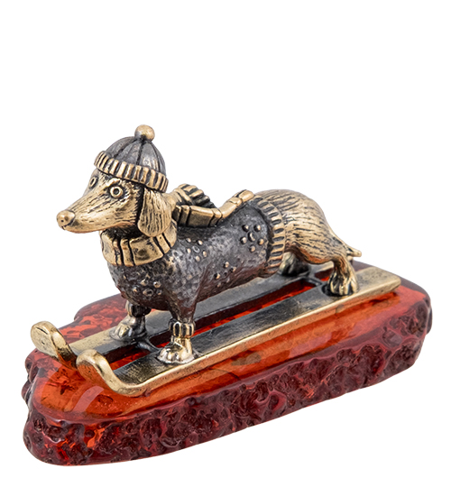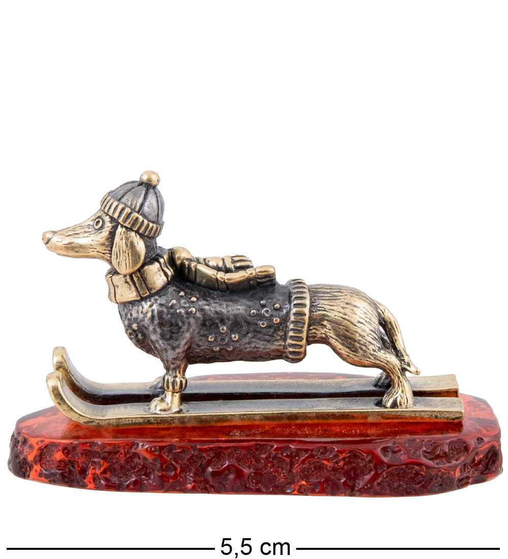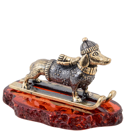 AM-4283 Фигурка «Такса Лыжница» (латунь, янтарь)