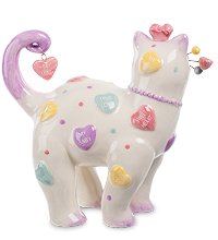 Этот фарфоровый кот – настоящее воплощение любви. Во всяком случае, он о ней говорит всеми возможными способами. На голове у него прикреплено сердечко с призывом его поцеловать, сердечки разбросаны по всему телу и на каждом – соответствующая надпись, говорящая о любви навеки. На кончике хвоста кот сделал пирсинг и подвесил еще одно сердечко. Теперь держит хвост элегантно изогнутым, чтобы всем было видно, что на нем написано. Даже на усах нацеплены сердечки. Не кот, а сплошная «валентинка», поздравление с Днем Всех Влюбленных. Подарить такого кота – все равно что объясниться в любви – и слов не потребуется, чтобы ваши чувства были поняты правильно.