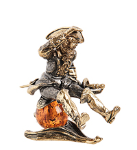 AM- 651 Фигурка «Сова с саксофоном» (латунь, янтарь)